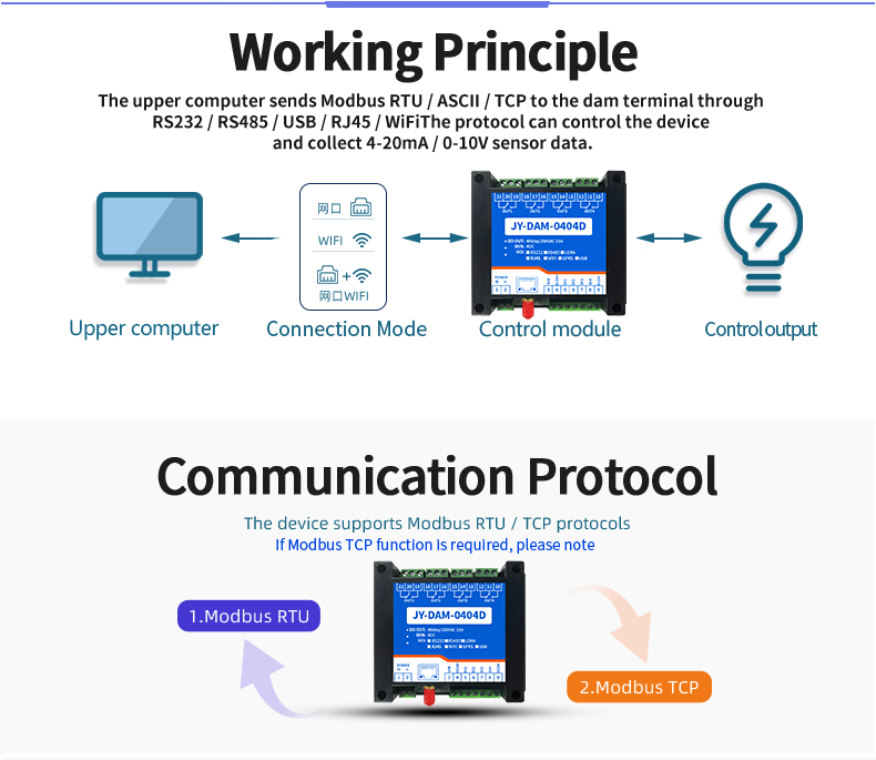 lndustrial gradeNetwork Control Module,4 Relay output (DO)4 Switch data acquisition(DI) DAM0404D,4-Way relay control output, contact isolation;4-Way switch input;Support single network port, single WiFi andnetwork poit+ WiFi;Support TCP / UDP working mode;Prov...