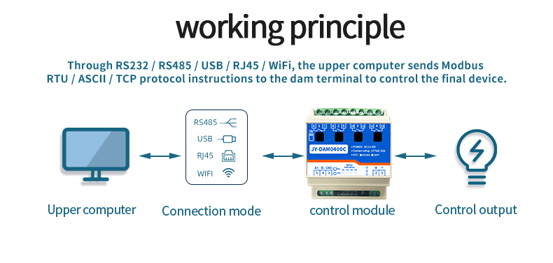 Industrial network control module 4-way relay output (do) dam0400c, 4-way magnetic holding relay control output, contact isolation; Support single WiFi; Support TCP / UDP working mode; Provide Android mobile app control software and computer web page control i...