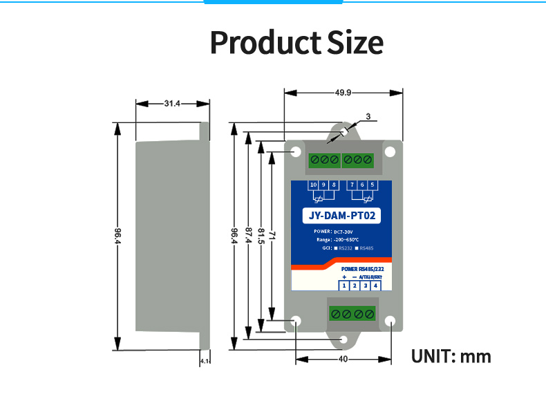 High precision 24 bit AD conversion resolution 0.01The temperature measure ment accuracy is 0.1℃Acquisition frequency 10HzSupport multi-channel simultaneous acquisitionThe device is compatible with twowire and three wire PT100 sensors