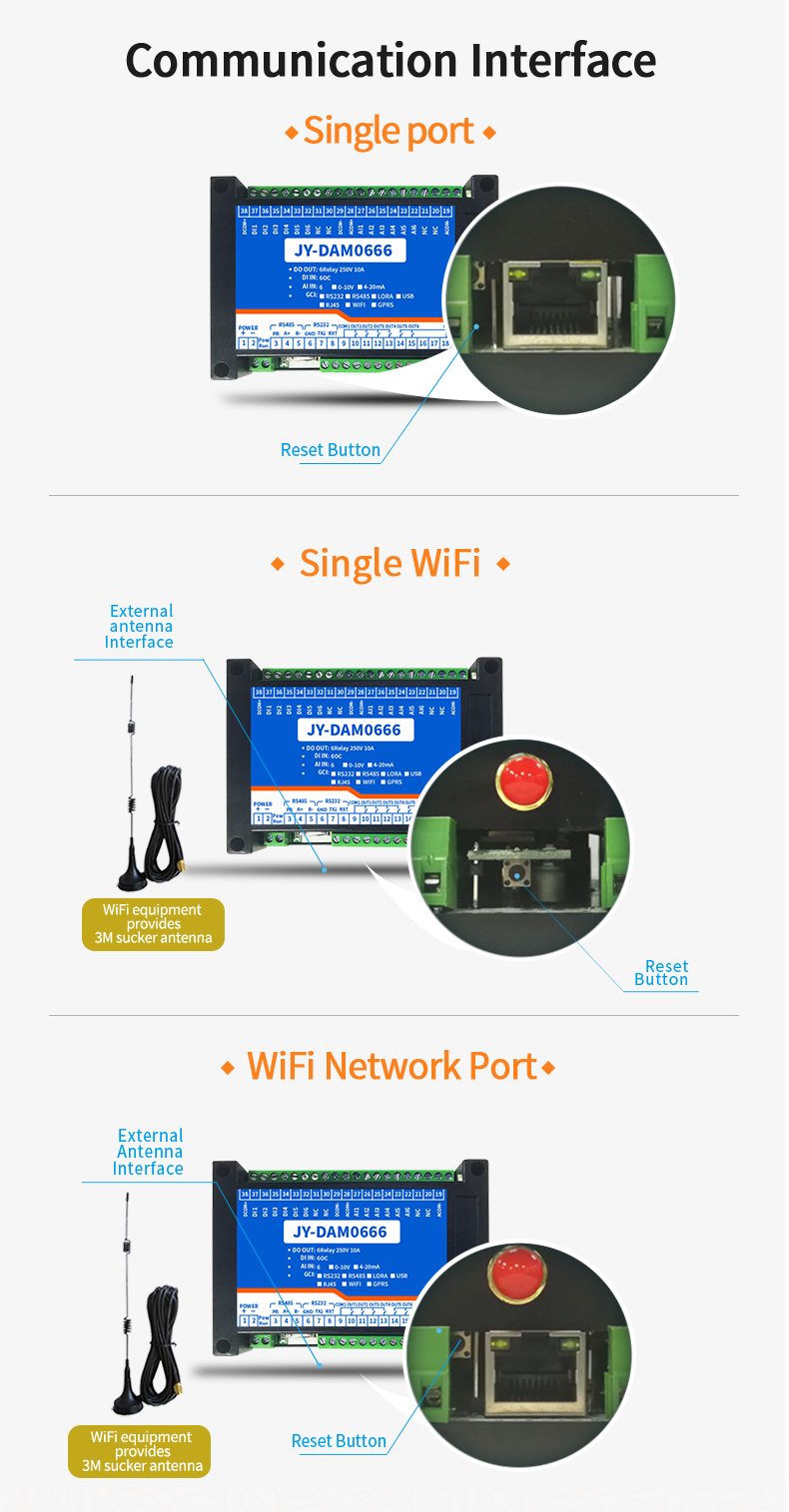 Dam0666 industrial cloud series GPRS version, 6-way relay output (do), 6-way switching value acquisition (DI), 6-way analog value acquisition (AI), 6-way relay control output, contact isolation; 6-way switching value input (NPN / dry contact); 6-channel analog...