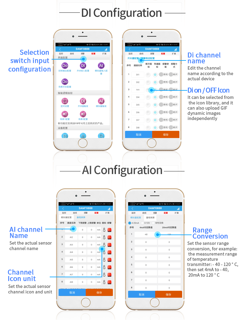 Dam-1200d industrial cloud series network version, 12 relay outputs (do), 12 relay control outputs, contact isolation; It supports three categories: single WiFi, single network port and WiFi + network port; Support TCP / UDP working mode; Provide Android / App...