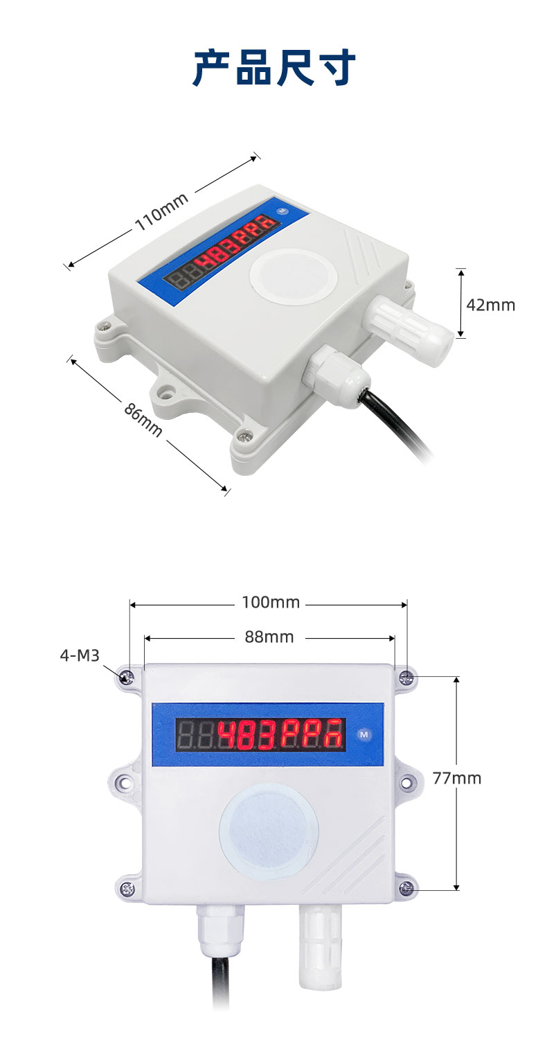 本设备带LED数码管实时显示,带有RS485隔离通讯接口,带4-20mA/0-10V输出接口,能够应用于丙烷泄漏、工业气体检测场景。