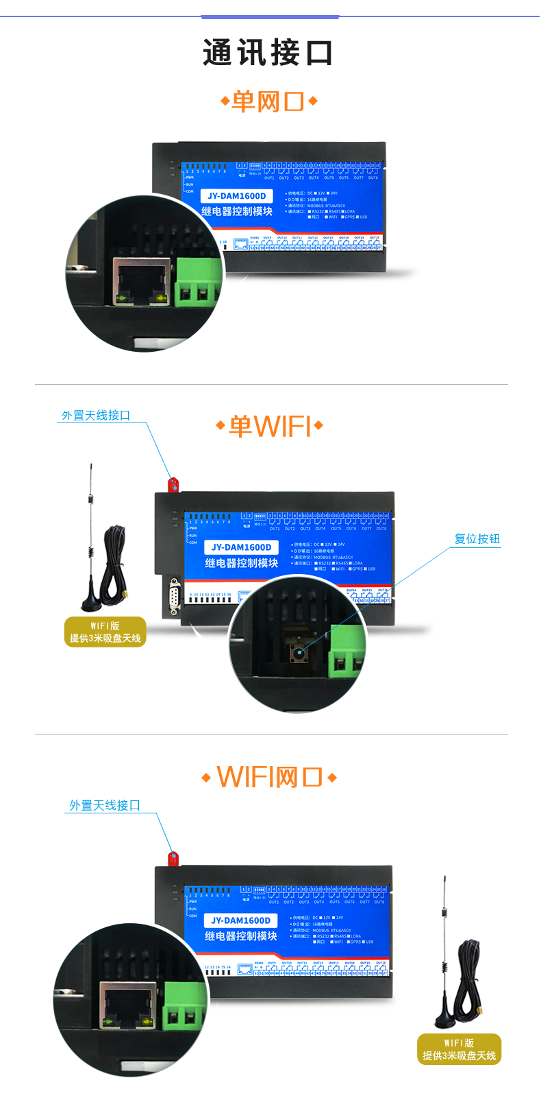 型号 | modbus | RS232 | RS485 | USB | RJ45 | 继电器 |