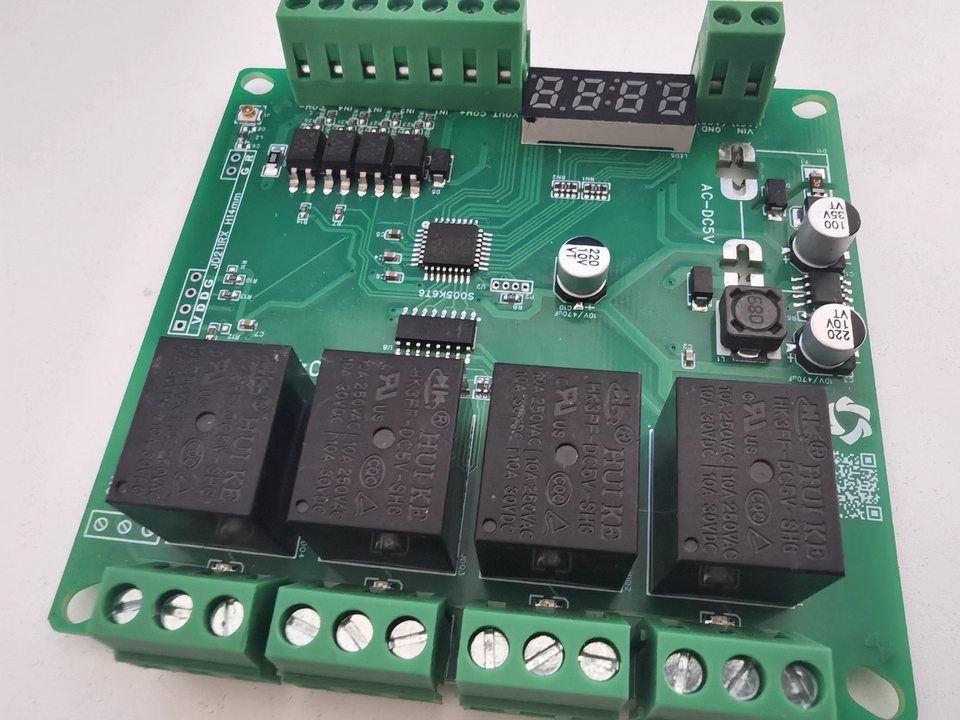 P--8 | 输入开关信号,对应继电器导通一段时间后断开,时间可配置,延时导通期间再次输入开关信号重新计时,每路相互独立,同一时间可以多路在工作 |