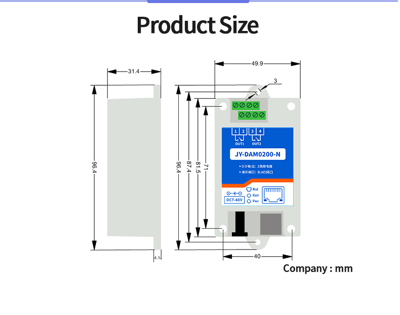 Dam0200-n industrial level network control module, relay output (do), 2 relay control outputs, contact isolation; Support single network port; Support TCP / UDP working mode; Provide Android App control software and PC control software; Support alarm and histo...