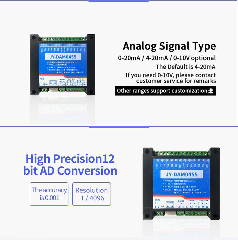 Industrial 0455 cloud platform series, 4-way relay output (do), 5-way switching value acquisition (DI), 5-way analog value acquisition (AI), 4-way relay control output, contact isolation, 5-way switching value input, 5-way analog value (4-20mA, o-5v. 0-10V) in...