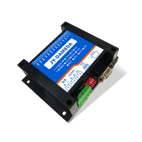 Industrial analog measurement and control module, 8 analog outputs (4-20mA, 0-5V, 0-10V); Support RS232, isolated RS485, WiFi, network port and other communication interfaces; Standard Modbus RTU protocol; 12 bit DA conversion; Resolution 0.01,