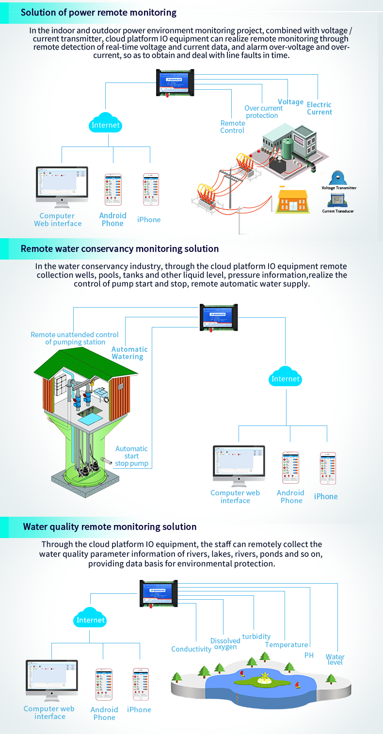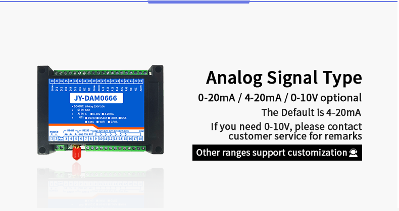 Dam0666 industrial cloud series GPRS version, 6-way relay output (do), 6-way switching value acquisition (DI), 6-way analog value acquisition (AI), 6-way relay control output, contact isolation; 6-way switching value input (NPN / dry contact); 6-channel analog...