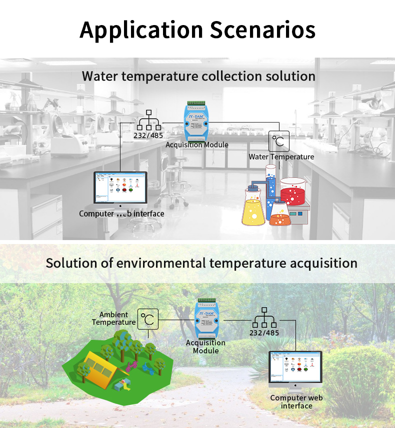 Industrial temperature acquisition module, ntc-10k-3950-1% sensor, measuring temperature range - 40 ~ 200 ℃, temperature resolution: 0.01 ℃, temperature accuracy: 0.1 ℃ (0 ~ 100C), built-in watchdog anti crash, which can be tested in high and low temperature t...