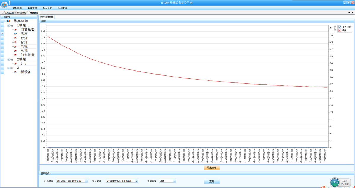 监控菜单下可以实时监控每路的温度及变化曲线。