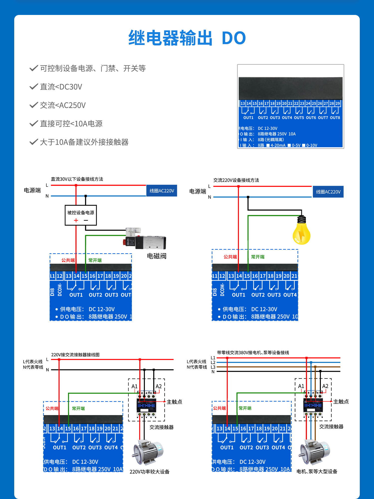 DAM-8888 工业级云系列网络版,8路继电器输出(DO),8路开关量采集(DI),8路模拟量采集(Al),8路模拟量输出(AO),8路开关量输入(NPN/干接点);8路模拟量(4-20mA、0-5V、0-10V)输入;8路模拟量(4-20mA、0-5V、0...
