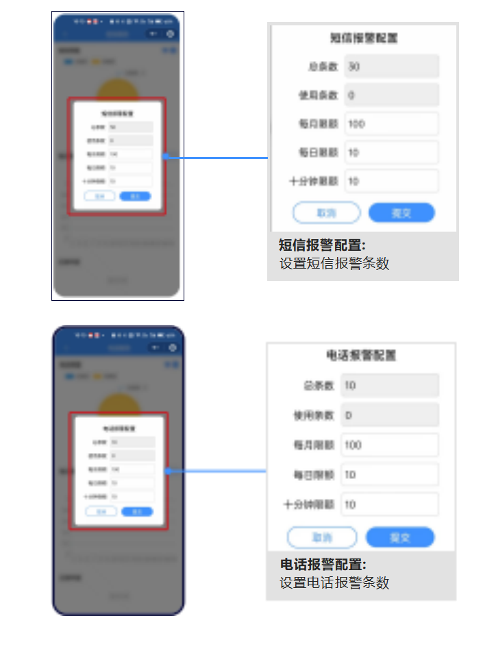 远程断电报警器用于实现对鱼塘养殖、畜禽养殖场、水 族馆、供电柜等场合断电时进行远程报警。设备采用220/380供电,内置4G网络无需用户插卡,远程报警方式包 含APP消息、微信通知、电话、短信报警等四种方式,其中APP消息、微信通知永久免费,电话和短信报警为收费功能, 电话报警0.2元/次,短信报警0.1元/次,报警费用由用户通过 微信小程序自主充值。报警功能由用户自主选择是否启用。