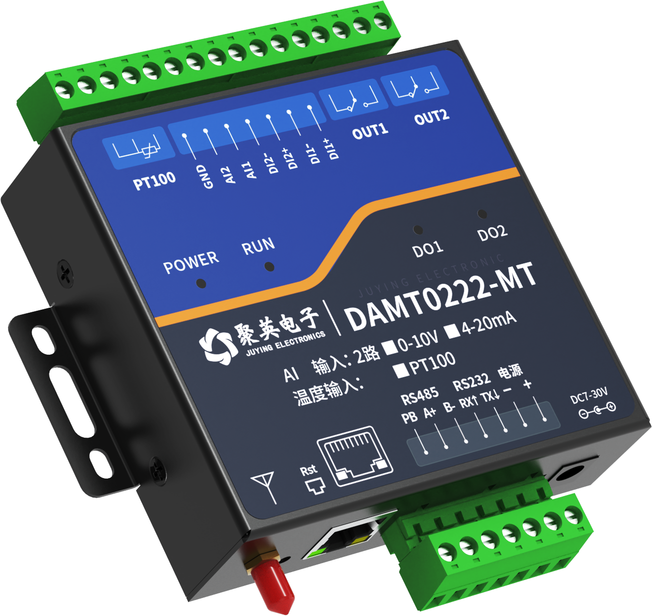 工业级 DAM-T0222-MT 云系列GPRS版,2路继电器输出(DO)2路开关量采集(DI)2路模拟量采集(AI)【可选,默认不含)1路PT100温度采集,2路继电器控制输出,触点隔离2路开关量输入(光耦隔离),2路模拟量(4-20mA、0-5V、o-10...