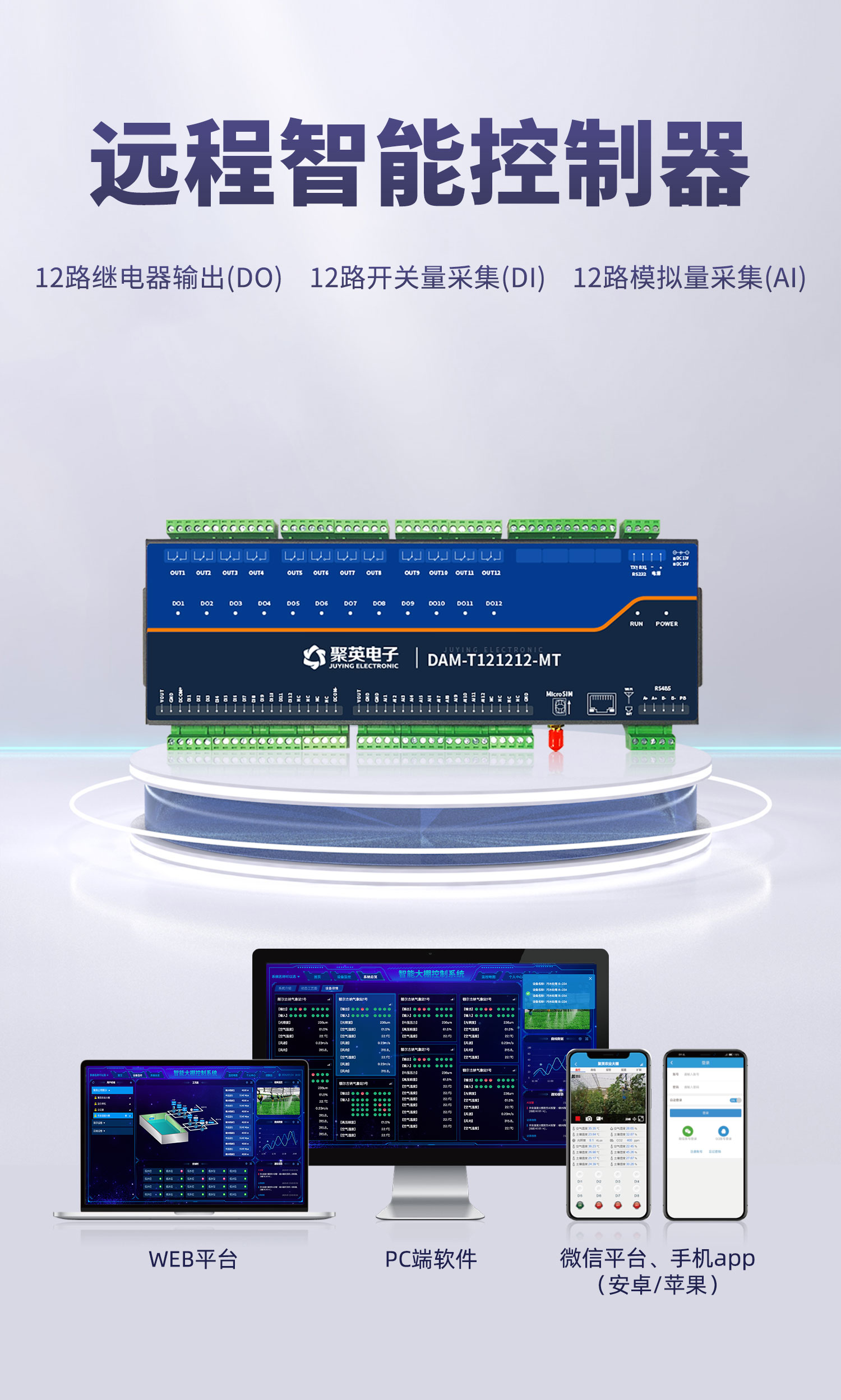 DAM121212-MT 工业级 云系列网络版,12路继电器输出(DO)12路开关量采集(DI)12路模拟量采集(AI),12路继电器控制输出,触点隔离;12路开关量输入(NPN/干接点);12路模拟量(4-20mA、0-5V、0-10V)输入;支持单WIFI...