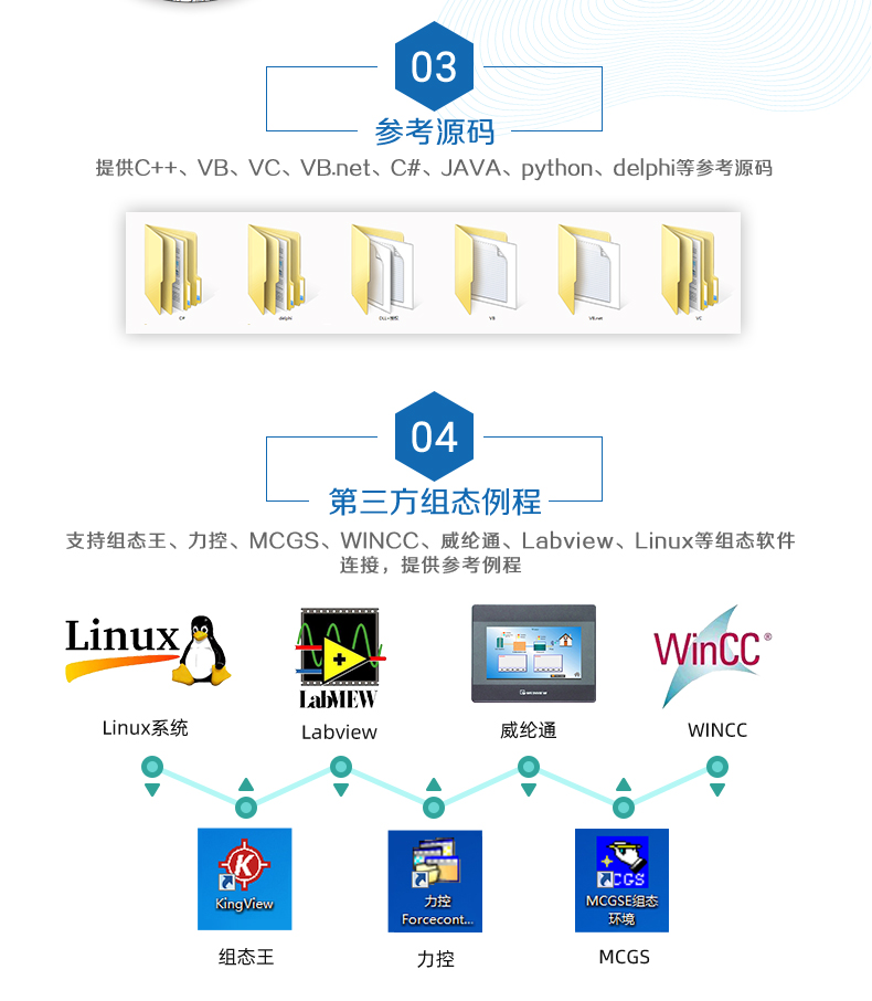 软件支持 | 配套配置软件、控制软件; 支持各家组态软件; 支持 Labviewd 等 |